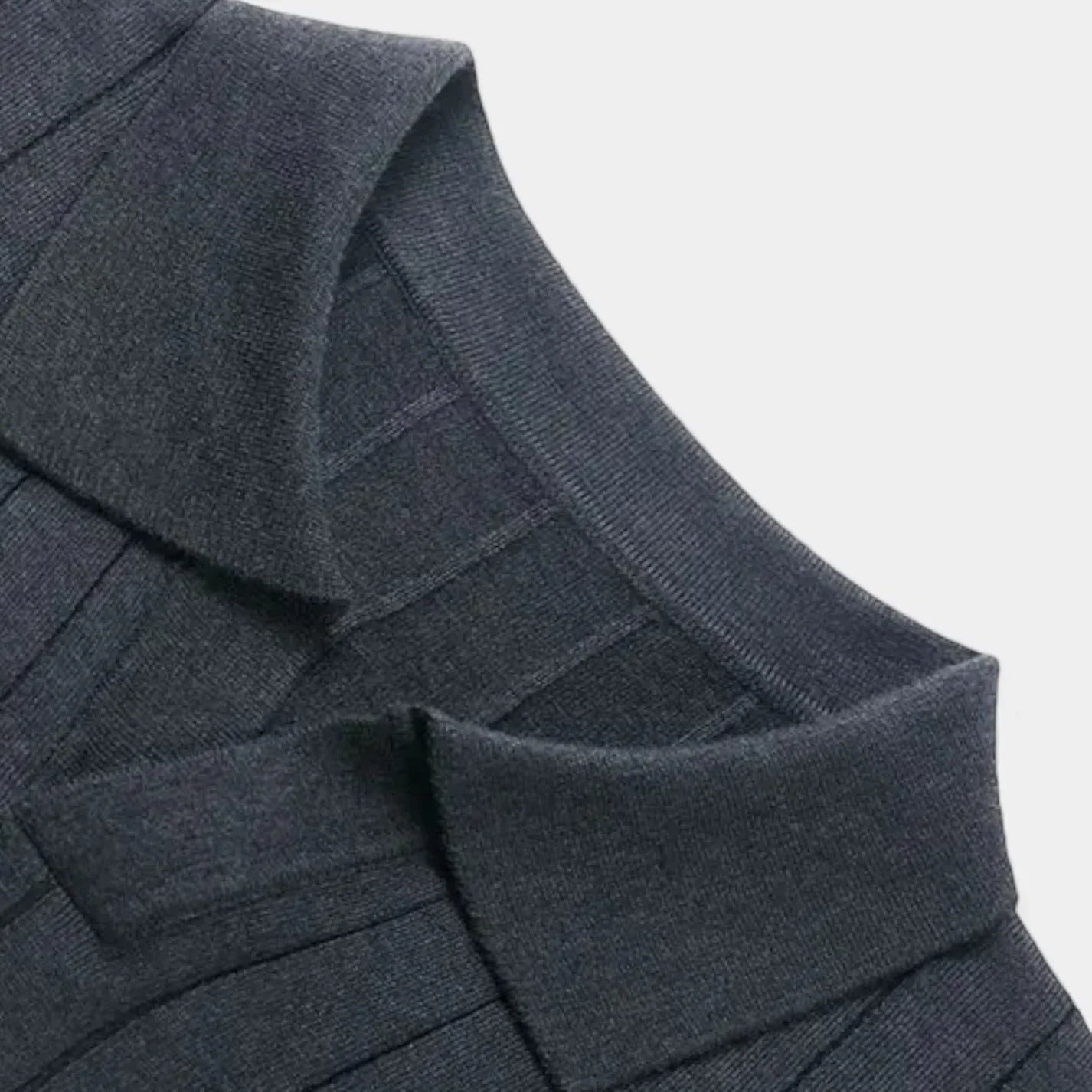 A refined essential for the modern gentleman. With a sleek rib-knit texture and a tailored silhouette, this long-sleeve polo delivers quiet sophistication in every setting — from evenings out to relaxed business attire. Comfort meets elegance in a timeless balance.